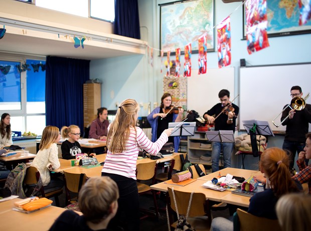 Voor het po bieden we zowel grotere projecten als losse lessen, met activiteiten op of buiten school. Bovendien kunnen scholen kiezen uit een volledig op maat gemaakt programma of kant-en-klare workshops. Zo kun je met de klas een bezoek brengen aan het orkest en een kijkje nemen bij een repetitie, maar ook workshops op school boeken. Van een musicus op bezoek, samen een muzikaal verhaal maken tot een dirigeerworkshop.