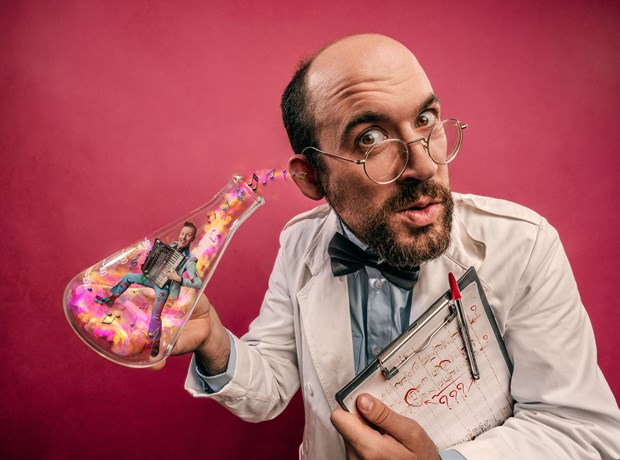 "Professor Pom zoekt proefpersonen voor muzikaal onderzoek! Doe je mee?" In deze interactieve voorstelling ontrafelt hij samen met het publiek en een klarinettist de magie van muziek.
