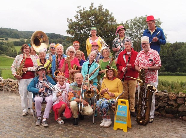 Ons vrolijk straatorkest verzorgt een gezellig buitenoptreden bij museum Beelden aan Zee in Scheveningen.